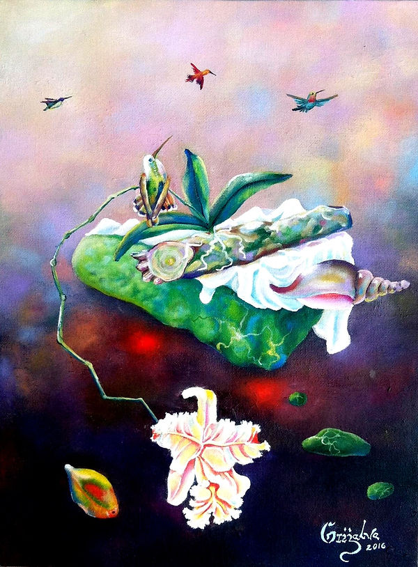 Daniel Grijalva , es un Artista con constantes propuestas conceptuales en la composición de sus obras, como se puede ver en esta obra con el contenido antropológico por la importancia al tema indigenista mesoamericano, su forma visual lo describe se ve la intención del énfasis de los códices mayas con el estilo surrealista que es lo que da esa forma espacial dimensional a la composición de sus obras, es de importancia decir que sus obras oscilan entra una gran cantidad de estilos que lo veremos en otras obras
